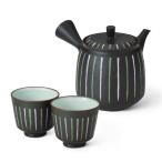 常滑焼 急須 玲光【陶茶こし/セラメッシュ】 窯変黒線文茶器揃 急須 230cc茶器揃え(急須:1 湯呑約85cc:2ヶ)<誕生日 母の日 父の日 敬老の日 内祝 >