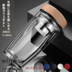 水筒 スポーツボトル 400ml ウォーターボトル 直飲み 耐熱ガラス 透明 茶こし付き 蓋付き タンブラー 二重構造 シンプル 断熱
