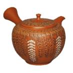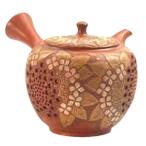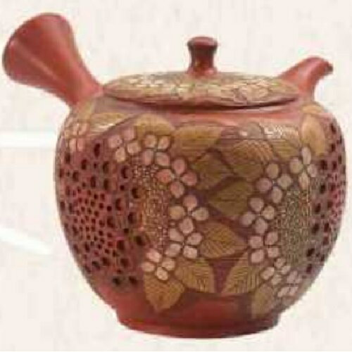 常滑焼 急須 舜園作「朱泥 紫陽花透かし」250ml (陶器製茶こし)