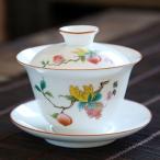 中国茶器 蓋碗 福寿桃 ( 飲食店向け 業務用 茶杯 高級磁器 景徳鎮風 おもてなし 茶器セット )