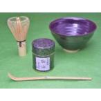 おけいこ用にも 天目型茶碗と宇治抹茶仙山(せんざん)30g缶入り、茶筅、茶杓のお点前セット