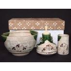 茶道具 茶箱 香泉作 仁清 花輪 三点セット ( 茶碗・振出・茶きん筒 ) 01-setsugetsuka27-6-16