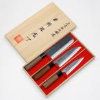 元兼 菜切り包丁 165mm 両刃 青紙スーパー 割込み 黒打ち仕上げ 木箱入り 紫檀赤丸柄