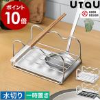 [ UtaU キッチンマルチスタンド ]特典付 お玉置き キッチン収納 鍋ふたスタンド 菜箸 キッチンツール 水切りトレー 一時置き ちょい置き ステンレス製 ウタウ