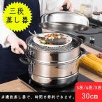 【タイムセール】IH対応 三段 3段 蒸し器 30cm 生活用品 キッチン用品 調理器物 ステンレス鍋 ステンレス製 円形 蒸板 三層鋼 蒸し器 ステンレス 調理鍋