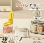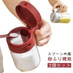 3個セット 調味料入れ スプーン内蔵 粉ふり機能 調味料ポット 調味缶 スパイスボトル 塩 砂糖入れ 耐熱ガラス 大容量 湿気防止 洗いやすい 300