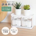 調味料ポット 調味料入れ 2個 セット ラック付き 調味料ケース 500ml 大容量 密閉 塩 砂糖入れ スパイスボトル スプーン付き 乾物 調味料 保存容器 キッチン収納
