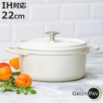 GREEN PAN ココット 22cm IH対応 フェザーウェイト 両手鍋 ( ガス火対応 食洗機対応 ココット鍋 両手なべ セラミック加工 ハンドルカバー付き 軽い )