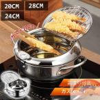 天ぷら鍋 揚げ鍋 蓋付き IH対応 温度計付き 20cm 24cm 28cm 304ステンレス 揚げ鍋 両手鍋 調理器具 アミ付き 蓋付き 油切り