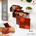 重箱 2段 3寸 9cm 黒 朱 お重 日本製 山中塗 福梅 一人用 ミニ 小さめ 手のひらサイズ 二段 おせち お重箱 おしゃれ シンプル 1人