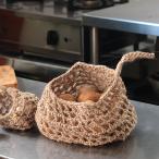 松野屋 麻ひも野菜入れ 中 保存袋 麻ひもかご バスケット 東北クロッシェ 手編み 麻ひも ハンドルメイド シンプル 野菜ストッカー 収納 保存