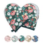なべつかみ オーブンミトン 2枚セット 送料無料 耐熱ミトン 綿入り 雑貨 耐熱温度180℃ 両手 キッチンミトン 電子レンジ手袋 鍋つかみ おしゃれ 左右兼用 鍋つかみ 母の日 プレゼント 結婚祝い ループ付き 収納しやすい 収納便利