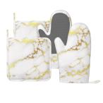 大理石オーブンミット 鍋つかみセット シリコン ホワイトゴールド キッチングローブ 鍋つかみ 耐熱 シェフ/ベーキング/料理/グリル/BBQ用 4個パ