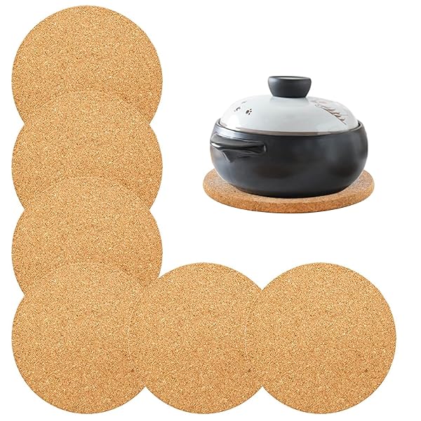 コルク鍋敷き 丸型 コルクマット トリベット コルクシート 耐熱性 滑り止め 吸水 木製 皿コルクボード 再利用可能 キッチン用品 自宅 飲食店 直径18.5cm×厚さ1cm 6枚セット
