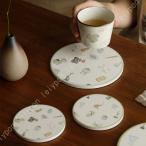 北欧風コースター 吸水 コップの底にくっつきにくい 滑りにくい 割れない 洗える セラミック陶器コースター コルク鍋敷き トレイ 飲料コースター
