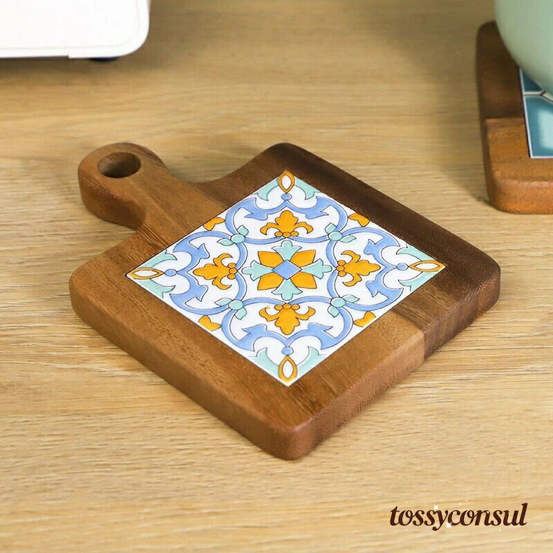「スーパーSALE10%OFF」 新生活 雑貨 インテリア ウッド カッティングボード オークの木製 鍋敷き 木製キチン用品 取っ手付き カフェナチュラル 天然木 木目 花柄 おしゃれ コースター 耐熱 4デザイン 17.8*17.8*2cm