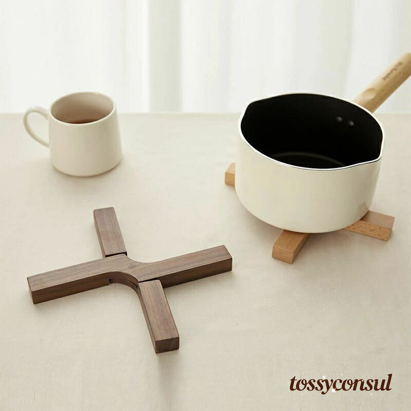 「スーパーSALE10%OFF」 新生活 おしゃれ コースター 耐熱 クルミ製 カフェナチュラル 天然木 木目 和風 折り畳み式 鍋敷き 木製キチン用品 22*4.8cm