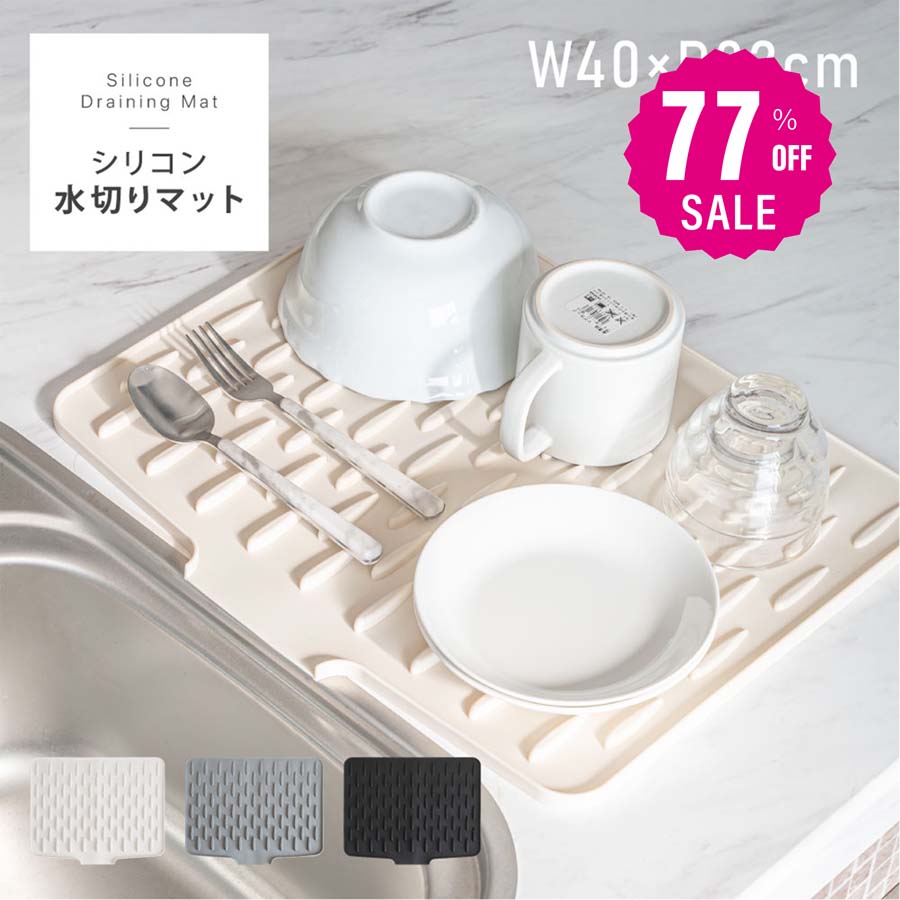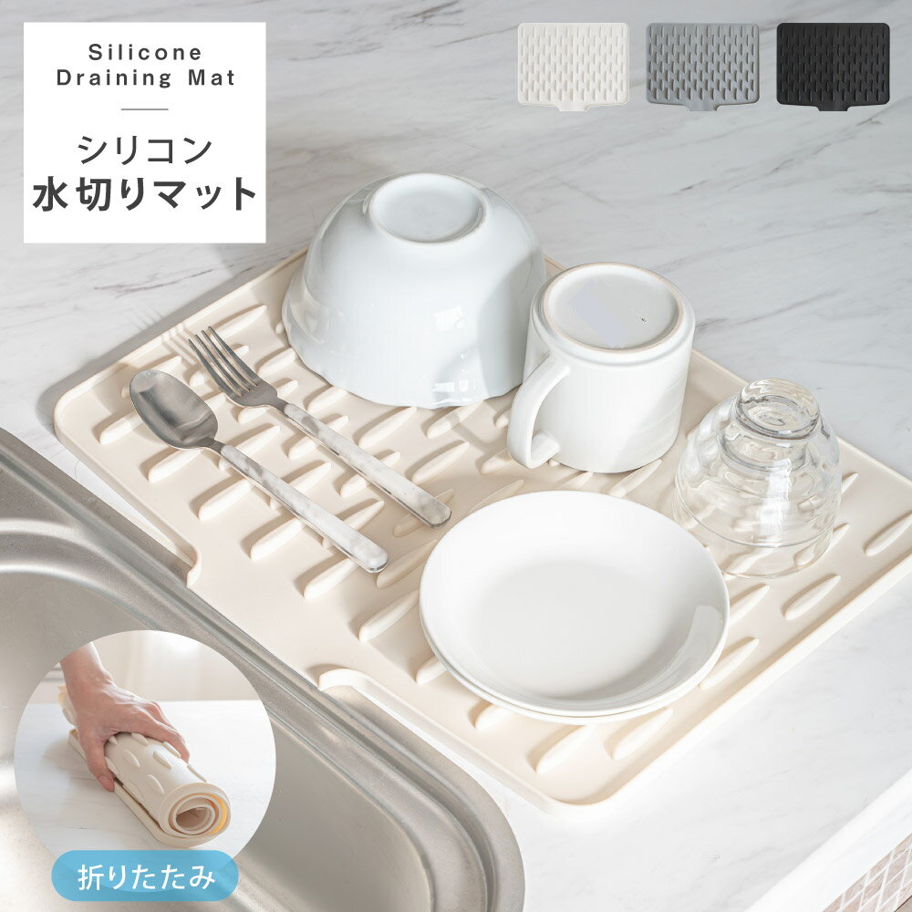 水切りマット シリコン 【全5色】 キッチン 食器水切り 水切り口付き 鍋敷きにもなる? 丸めて収納
