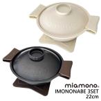 土鍋風 アルミ鍋 3点セット (土鍋 22cm ・鍋敷き・鍋つかみ) ガス・IH対応 1〜2人用 MIAMONO ミアモノ IMONONABE 3SET (鋳物鍋 鍋セット おしゃれ オシャレ)
