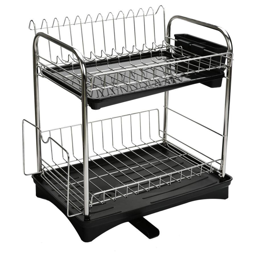 【スーパーSALE!50%OFF P2倍!】 水切りラック 2段 食器 水切りかご 2段式 Dish Rack ディッシュラック ステンレス製 錆びない キッチン収納 乾燥 食器水切り バスケット 可動式 ノズル付き シンクカトラリーポケット付き 大皿立て 鍋蓋スタンド まな板立て 台所用品 調理台