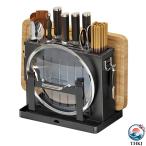 まな板スタンド 包丁立て ステンレス鋼製 鍋蓋スタンド 箸立て?水受けトレイ付き キッチンツールスタンド 省スペース多機能水切りラック おしゃれブラック フッ