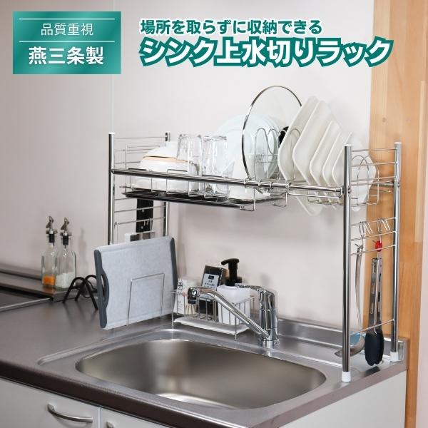【信頼の燕三条品質】 シンク上水切りラック シンク上 水切りラック ラック 収納 水切りかご スリム 日本製 燕三条製 ステンレス 伸縮 スライド キッチンツール 収納 キッチンツールフック 鍋ふたスタンド シンク 渡せる皿立て コンパクト シンク奥スタンド シンク奥
