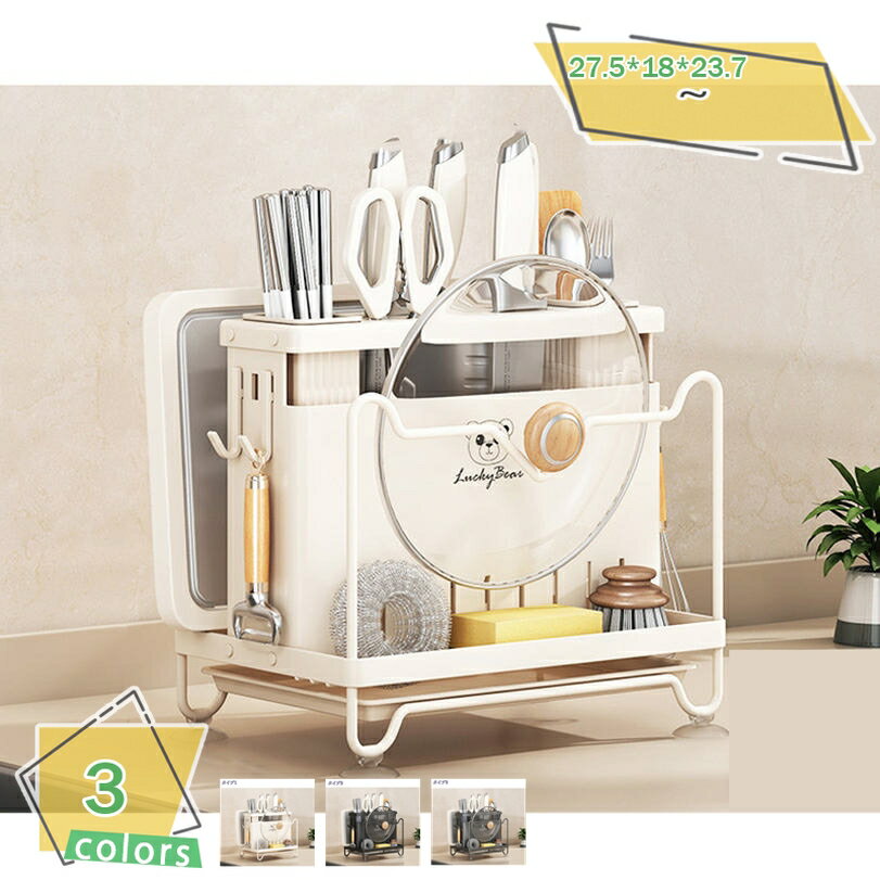 まな板スタンド 包丁立て収納 まな板立て 多機能収納ラック 鍋蓋スタンド 水切りラック お箸立て付き キッチンカト ラリー棚 デスクトップ 水切り ナイフ棚