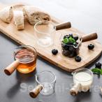 ミルクポット ガラス ミニ 鍋 多機能 木製ハンドル ミルクピッチャー お茶 卓上 おしゃれ コーヒー インテリア 可愛い ミルク パン コンパクト キッチンスープ鍋