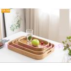 【休業期間:12/27〜1/5】お盆 トレー すべらない 取っ手付き 長手盆 木目チーク 39〜45cm 滑らない 滑り止め おしゃれ 大きい 長方形 すべり止め加工 可愛い カフェ おぼん トレイ