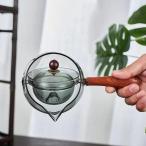 ポット急須 透明横手急須 回転式茶こし付き 耐熱ガラス ガラス茶こし 木製持ち手 電気コンロ・ガスコンロ両対応
