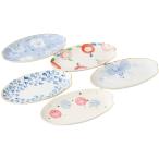 食器セット 焼物皿 中皿 手描き 染付五彩長皿揃 5枚セット 食洗機対応 かわいい