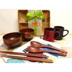 結婚祝いギフト食器セット-8 木製 全11点セット 箱の横幅31cm ランチプレート2枚 スプーン2本 八角箸2膳 スタッキング椀M2個 末広カップ2個 キッチンタオル1枚