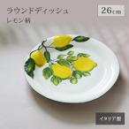 レモン柄 食器 ラウンドディッシュ プレート 大皿 26cm 手描き 陶器製 おしゃれ 南欧風 サラダ皿 写真映え ギフト 贈り物 ワンプレート 洋食器 来客用 新生活