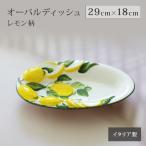 レモン柄 食器 オーバルディッシュ 楕円皿 プレート 大皿 29cm 手描き 陶器製 おしゃれ 南欧風 ワンプレート 盛皿 写真映え ギフト 贈り物 洋食器 ディナー皿