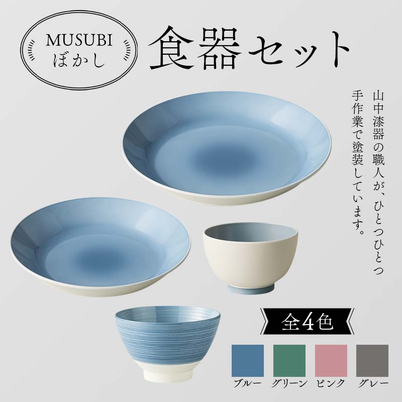 【ふるさと納税】【選べるカラー】MUSUBIぼかし 食器セット 山中漆器 山中塗 軽量 レンジ対応 食洗機対応 木目 ナチュラル 自然 おしゃれ ギフト F6P-1911var