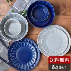 送料無料 しのぎお花のシリーズ8点セット ペアセット食器 お皿 洋食器 食器セット おしゃれ セット食器 プレート 鉢 サラダボウル ペア食器 ファミリー食