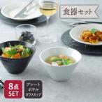 モノトーンオシャレ食器セット 二人用8点おしゃれ モダン 磁器 日本製 美濃焼 白い食器 黒い食器 食器セット セット食器 ペア食器 ファミリー食器 家族食器 爆買