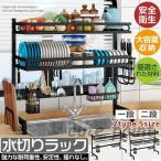 1年保証 キッチンラック 水きりラック 乾燥棚 収納 幅55-95cm シンク 伸縮式 横幅高さ調節 皿 食器 スリム 大容量 2段 水切りかご まな板立て 包丁立 送料無料
