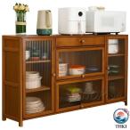食器棚 レンジ台 ダイニングボード キッチンボード アンティーク ガラス扉(代引不可) ▼