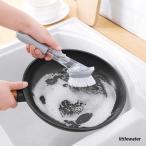 キッチンブラシ 食器洗いブラシ 柄付きブラシ お掃除 洗剤ケース付き キッチンツール ワンプッシュ 水回り 排水溝 シンク フライパン