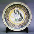 九谷焼 日本芸術院会員 武腰敏昭作 12号飾皿 小紋蝶の図