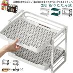 【全品2点で5%OFF】キッチンラック 2段水切りラック 大容量 食器乾燥ラック シンク上・シンク下対応 引き出し付き 折りたたみ式 水切りかご 流れる水切り おしゃれ 省スペース まな板・包丁・箸立て付き 食器収納ラック