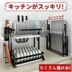 水切りラック 2段 折りたたみ 大容量 収納 ラック ステンレス 水切りかご スリム 水切りバスケット キッチンラック 食器 収納 台所 流し台 収納 組立不要