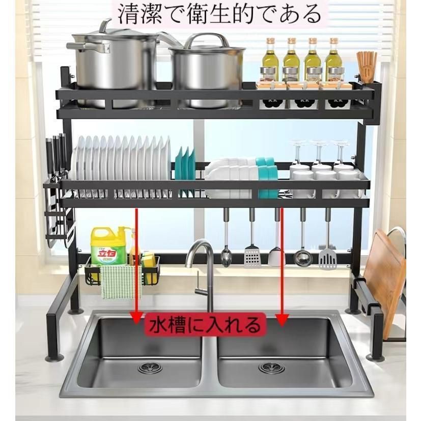 「スーパーSALE10%OFF」 水切りラック 2段 水切りかご 大容量 ステンレス製 シンク上 まな板収納 カトラリーケース付き 食器置き 乾燥 大容量 収納 棚 80cm 90cm プレゼント ギフト