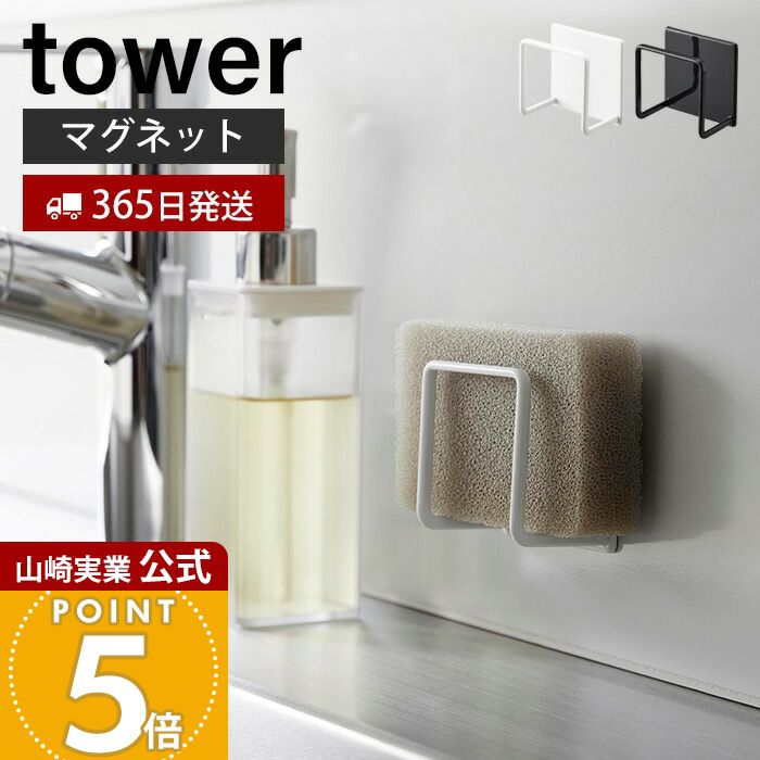 【365日出荷】山崎実業 マグネットスポンジホルダー タワー tower 公式 おしゃれ 磁石 スポンジラック スポンジ置き 使い分け 食器洗い用 掃除用 スポンジ 2段 水切り ホワイト 3070 3071 タワーシリーズ