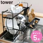 特典付 山崎実業 スリムスリーウェイ水切りワイヤーバスケット2段 タワー tower 公式 水切りかご 水切りラック 水切りトレー ドレーナー 5070