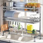 水切りラック 2段 ステンレス シンク上 食器棚 スリム 水切りかご 大容量 水切りカゴ 食器乾燥ラック ワイド 食器 水切り まな板 キッチンラック 幅90
