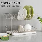 水切りラック 2段 水切りかご ステンレス製 キッチン 食器 収納ラック 食器置き場 水切り ディッシュラック 大皿立て 錆びない 水が流れる 箸立て (〓 2段式)