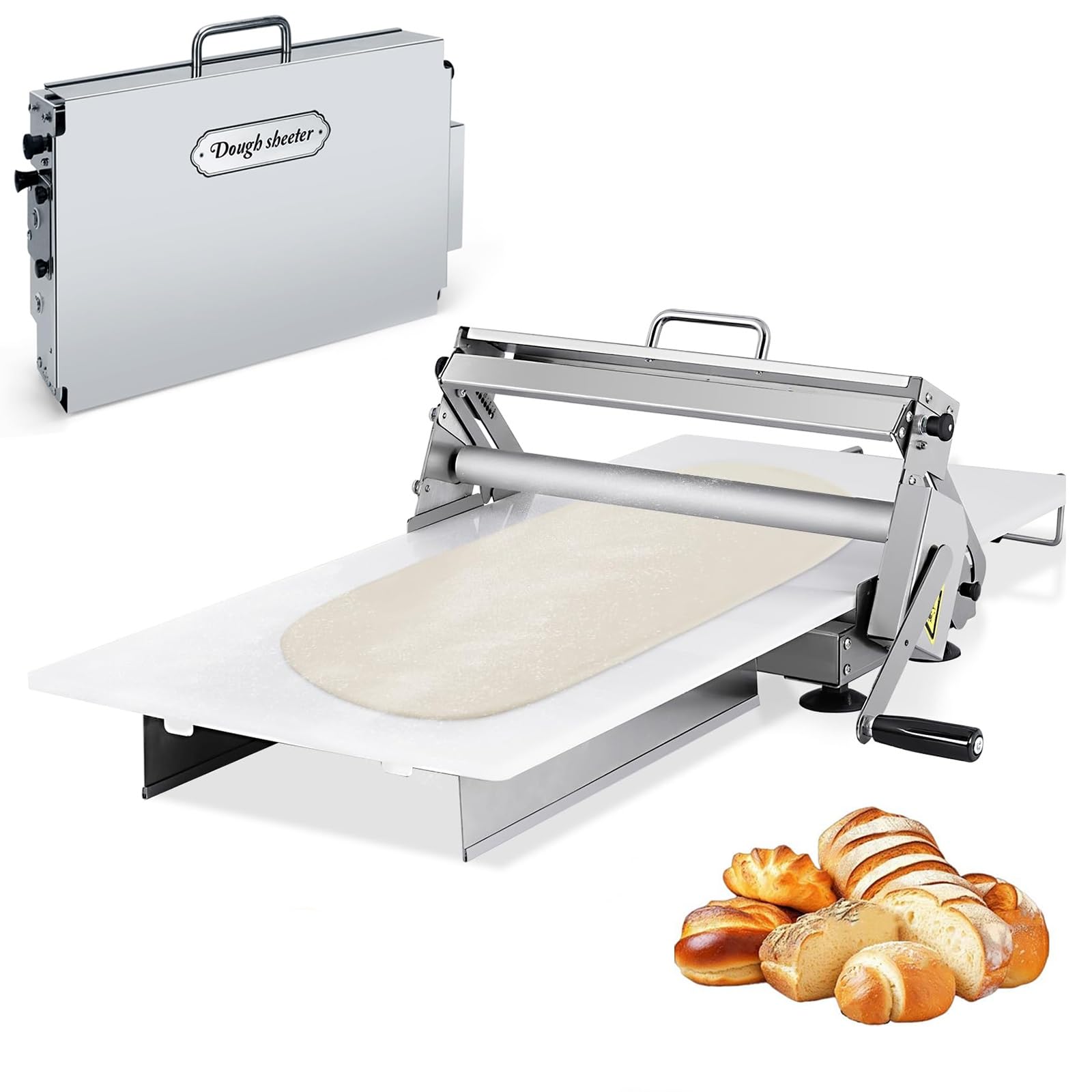 折りたたみ式手動生地シーター、厚さ調節可能なステンレス製ペストリーローラー、シーターボード、業務用家庭用手動生地ローラー、ベーカリー、ピザ、クロワッサン用