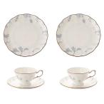 NARUMI(ナルミ) 食器セット ホニトン・レース ブライド ホワイト レース柄 かわいい 2人用 4ピース入り モーニングセット 結婚祝い プレゼ